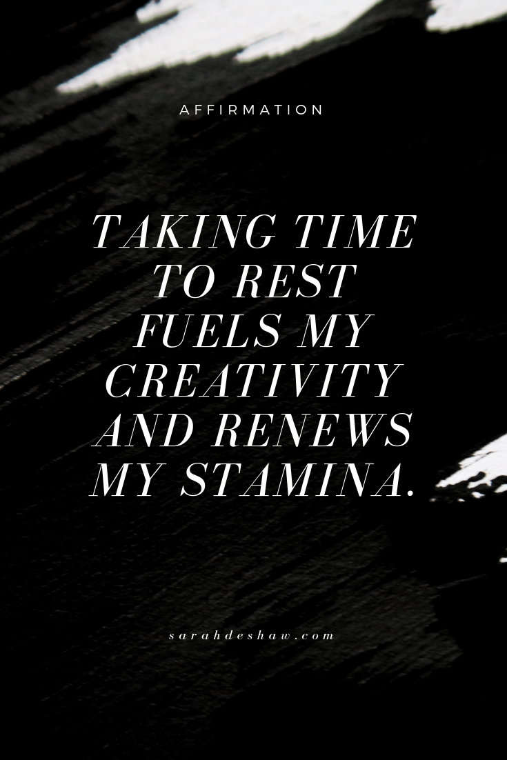Taking time to rest fuels my creativity and renews my stamina.